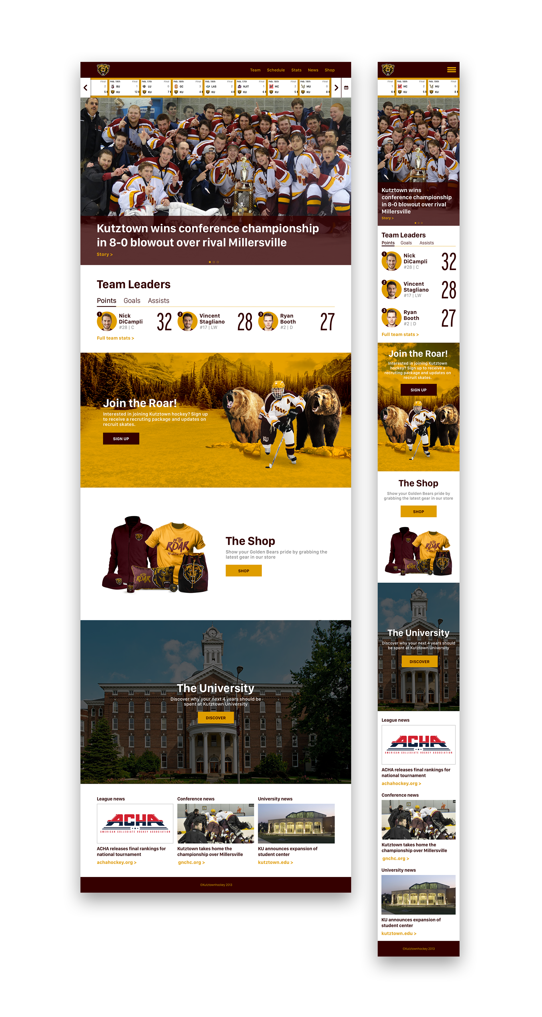 With the rollout of the “Be The Roar” campaign Kutztown wanted to have a better website to offer another way for fans to connect with the team.